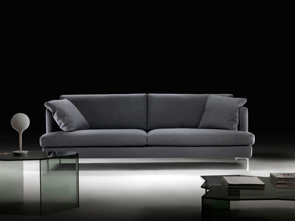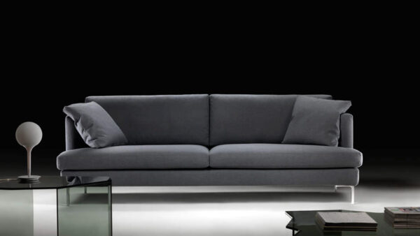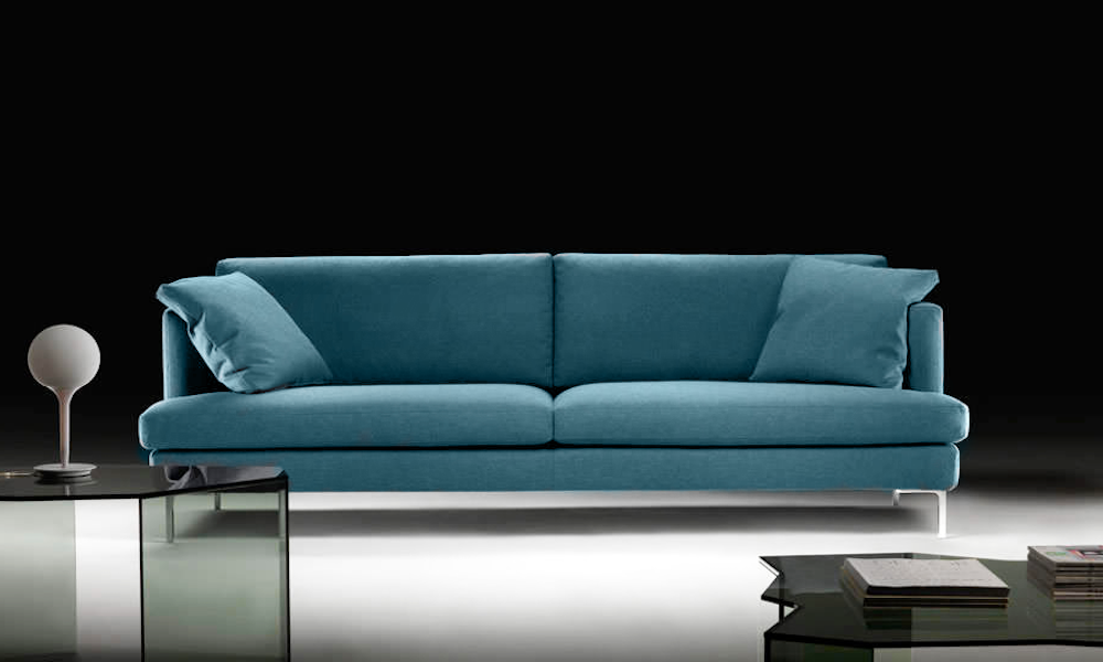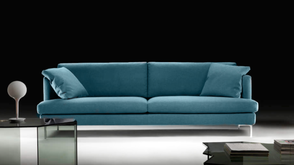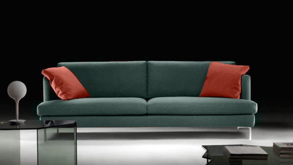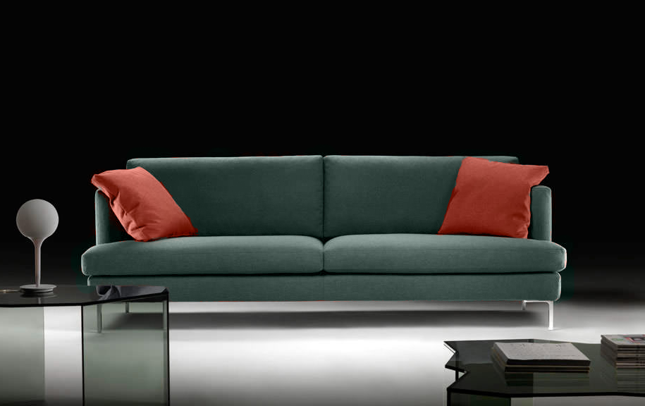 The handcrafted solid wood structure is available as made-to-measure. The soft goose down cushions and back cushions exalt the comfort of this sofa. Upholstery is completely customisable and removable – wide choice of fabrics, natural leather, microfibre or faux leather.