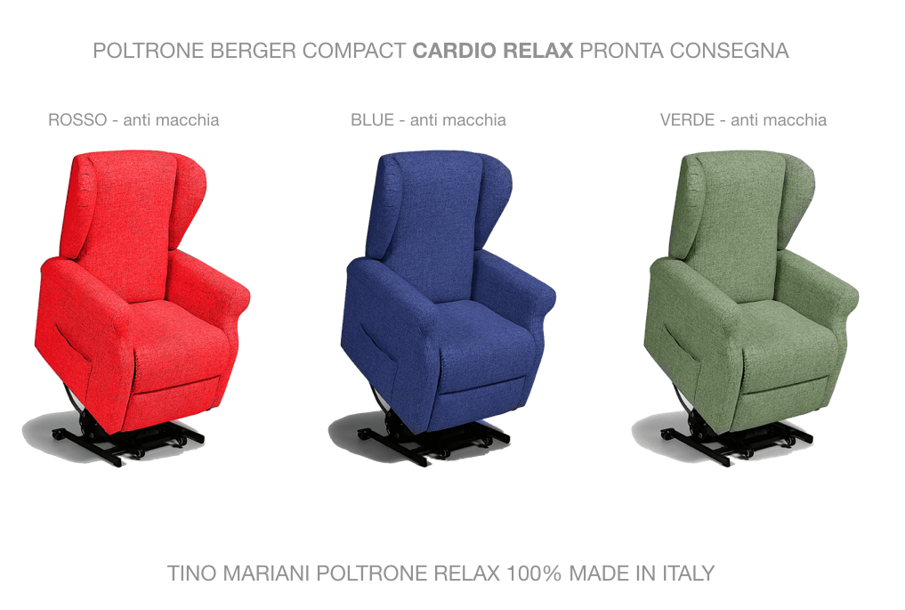 Belle, comode e di qualità artigiana. Le nuove poltrone cardio relax Berger Compact in pronta consegna da Tino Mariani sono perfette per il tuo relax quotidiano.