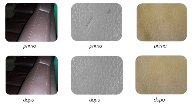 Ecco un esempio che dimostra come sono stati riparati dei graffi su dei divani in pelle: