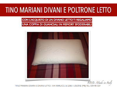 acquistando un divano letto Tino Mariani riceverai in Omaggio una coppia di guanciali in memory sfoderabili dotati di eccellenti caratteristiche: