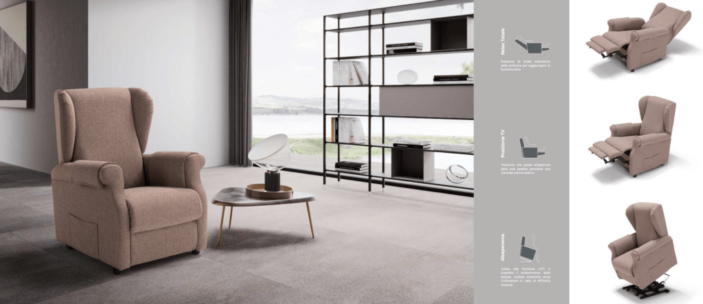 Scopri subito il comfort delle poltrone relax per anziani non autosufficienti e scegli il modello più adatto alle tue necessità. Visita il nostro showroom di Lissone o contattaci allo 039481507 per informazioni e per acquistare la tua poltrona relax con consegna rapida!