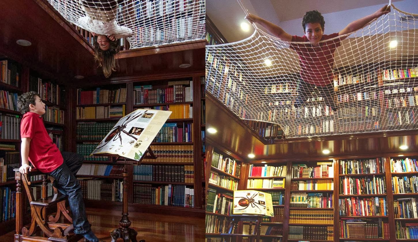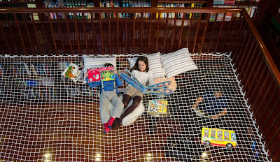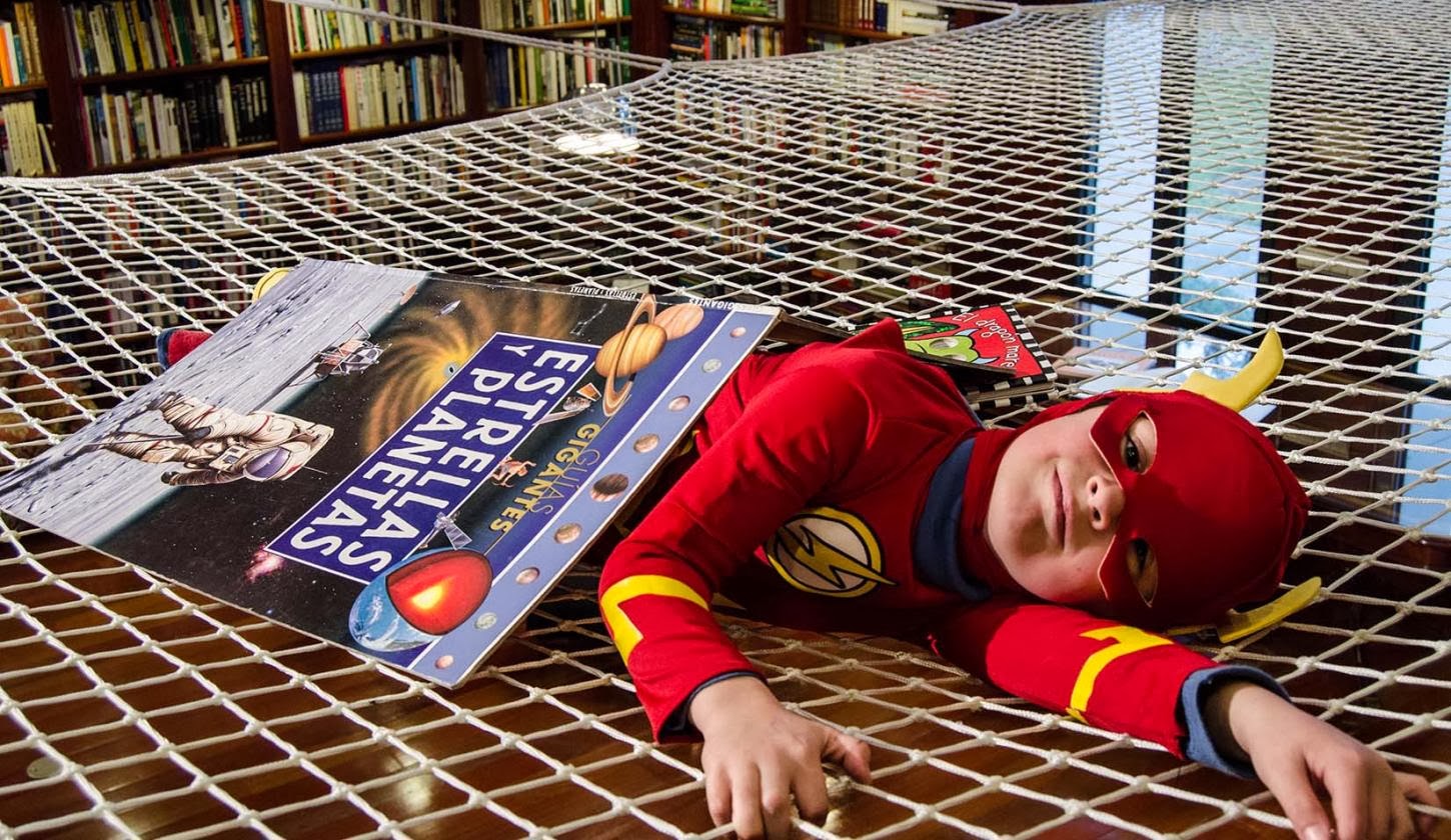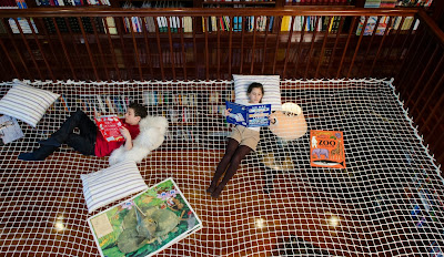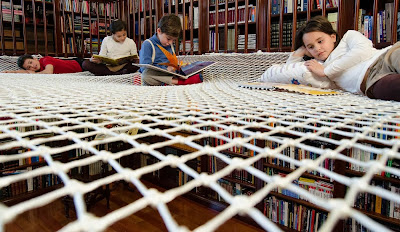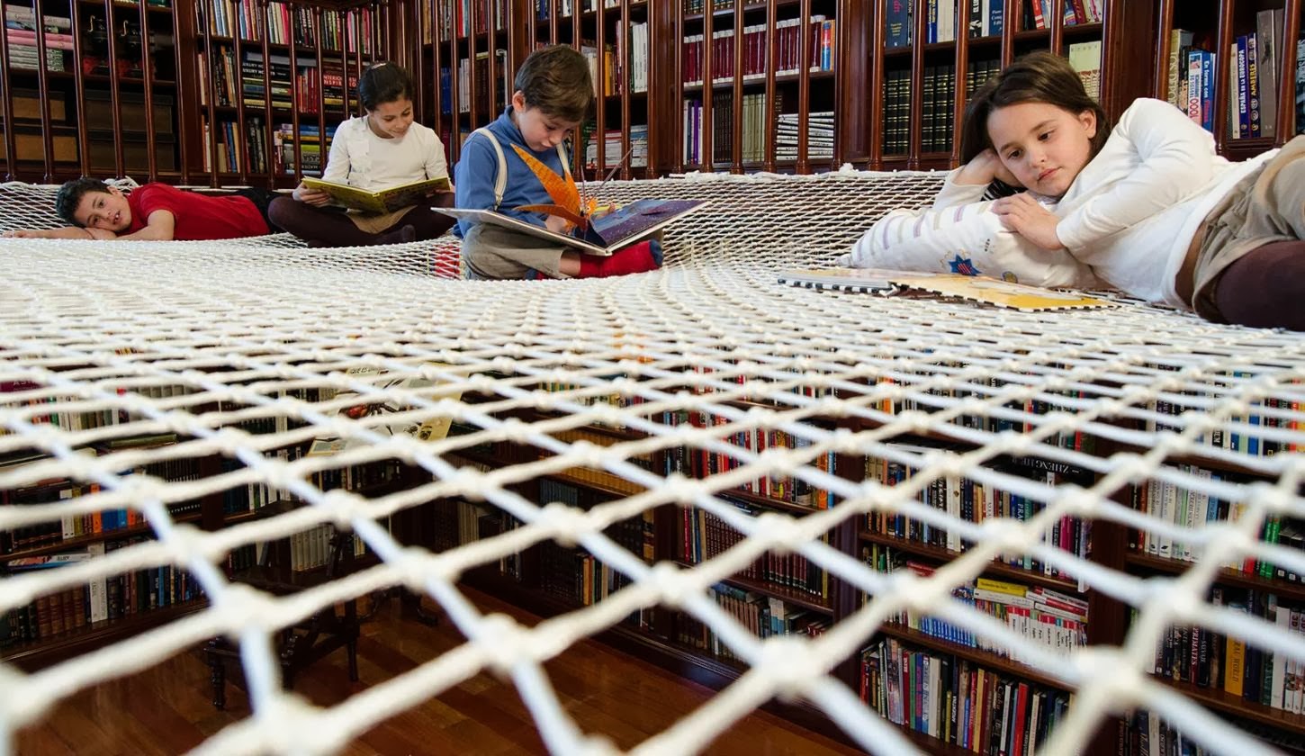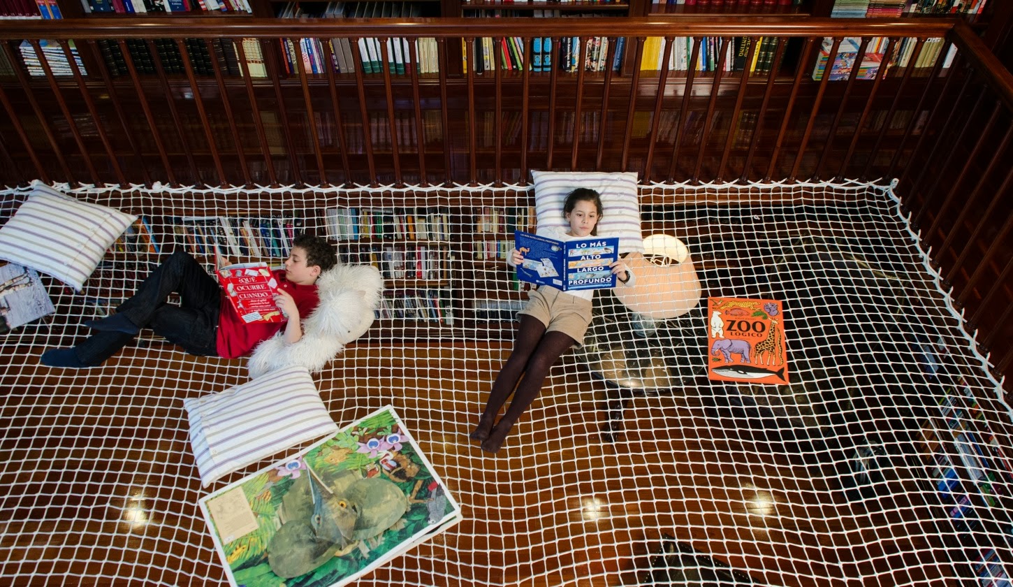 Una grande rete sospesa dove i bambini possono divertirsi, dondolare e dedicarsi appassionatamente alla lettura, in un modo alternativo e piacevole. Un modo diverso e fuori dagli schemi dei grandi, dedicato solo a loro.
