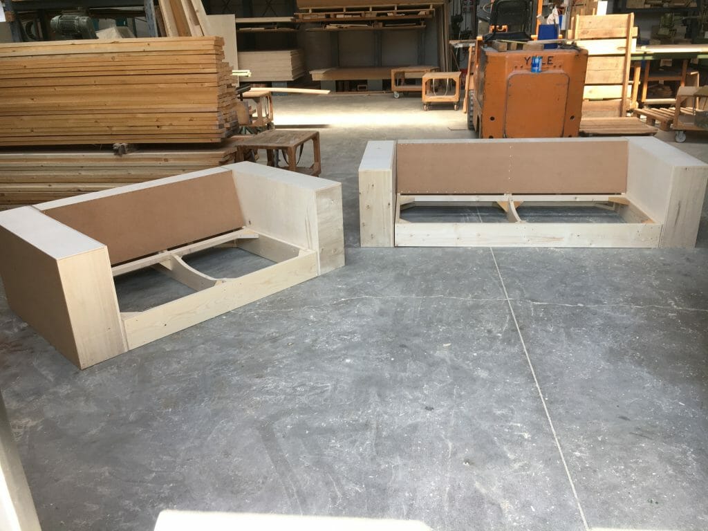 Solido legno in massello, realizzato artigianalmente a mano nelle falegnamerie da esperti artigiani, che da un disegno, creano il vostro nuovo divano.