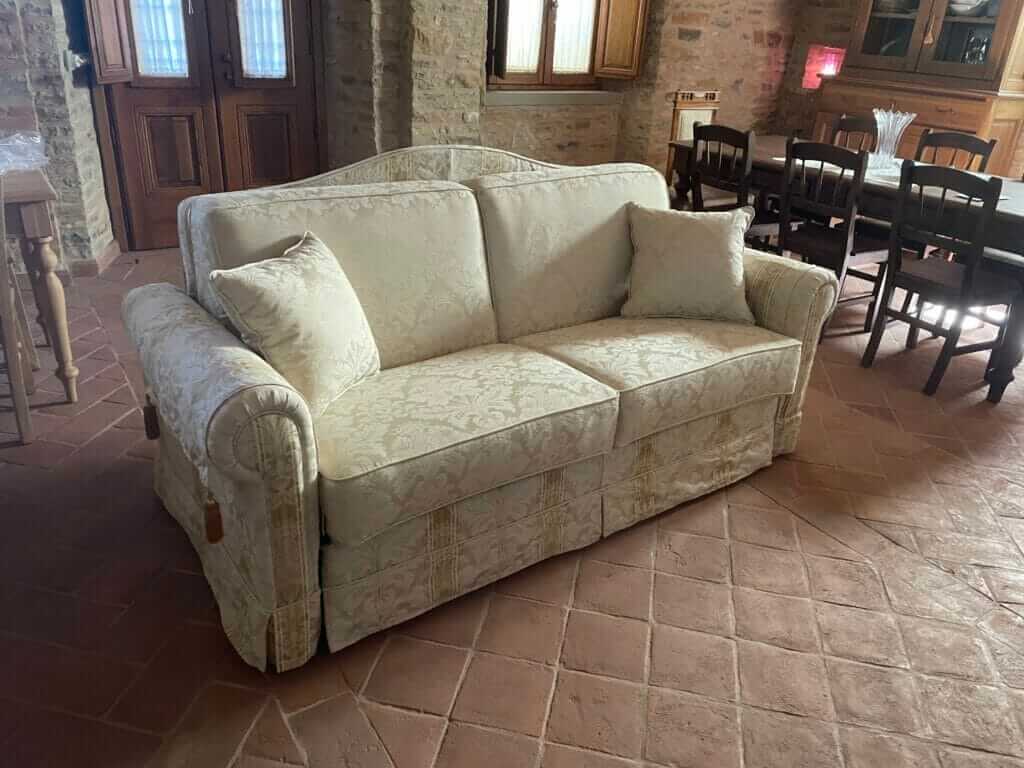 Il segno distintivo del divano letto classico personalizzato è sicuramente la presenza di un bracciolo arrotondato ed armonioso, volantino ( chiamata anche balza ) e rivestimenti in tessuti eleganti, rigati e damascati.