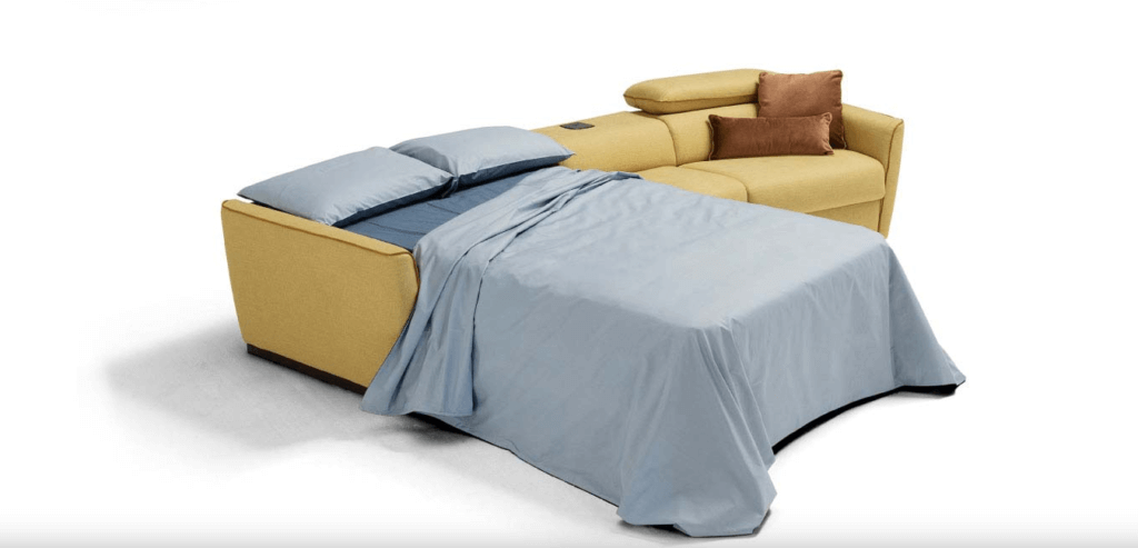 Divano letto comodo con materasso alto.
