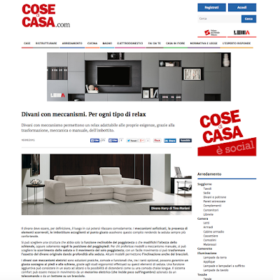 Il divano moderno Harry di Tino Mariani è stato presentato con un’articolo redazione online sul famoso portale dedicato all’arredamento di qualità cosedicasa.com.