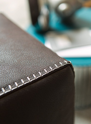 Il particolare che salta subito all’occhio è il dettaglio della cucitura chiamata “ punto cavallo “ che può essere tono su tono o in contrasto con il colore scelto per il rivestimento.