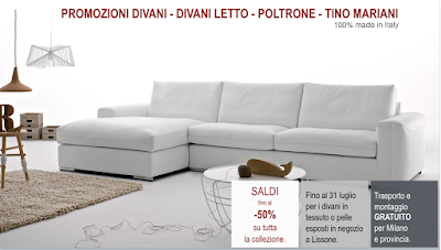 La promozione divani e divani letto Tino Mariani è online e permette a tutti di acquistare divani artigianali anche ad angolo o con chaise-longue in tessuto sfoderabile o in pelle a prezzi scontati fino al 50%.