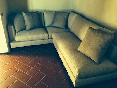 Personalizzato nella scelta del rivestimento, il nuovo divano Isola commissionato dal Cliente è stato rivestito in tessuto sfoderabile misto-lino, morbido e resistente di color ecrù.