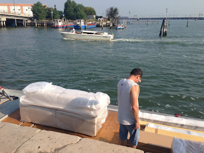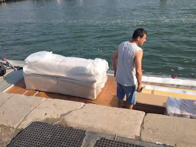 Questo è quello che abbiamo fatto qualche giorno fà, per consegnare un divano letto matrimoniale Vittoria e un letto imbottito a Venezia.
