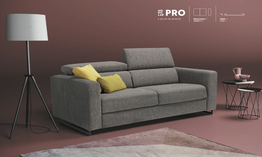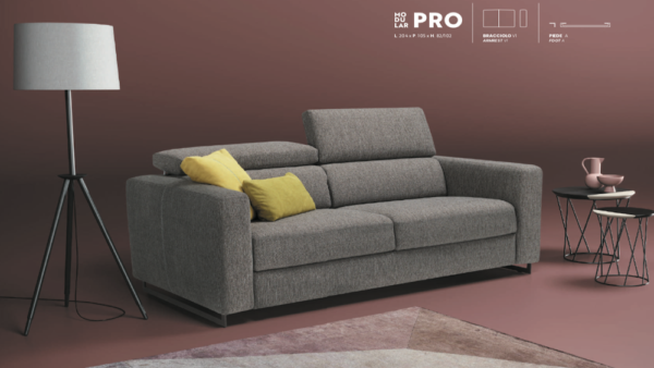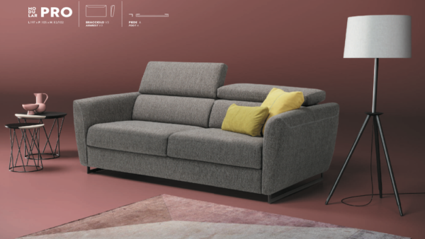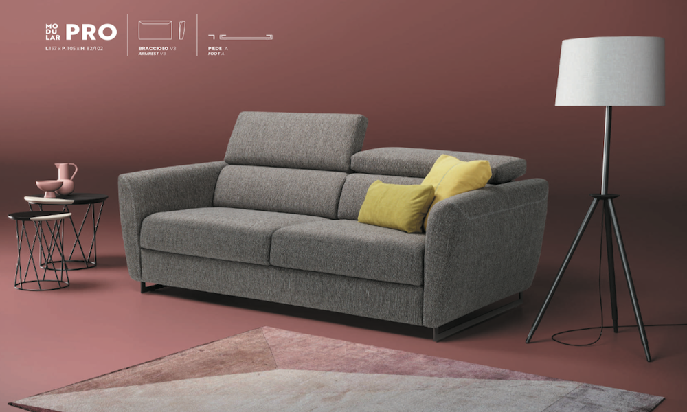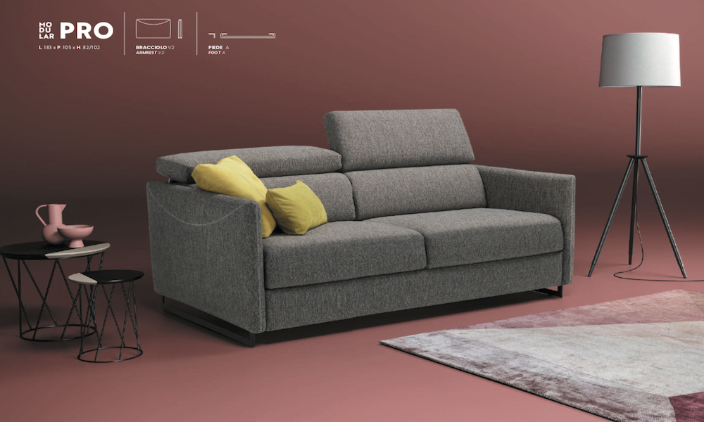 Sì, il divano letto Modular Pro è completamente personalizzabile: puoi scegliere tra 4 modelli di braccioli, 4 tipologie di piedini e rivestimenti sfoderabili in tessuto, microfibra, pelle o velluto.