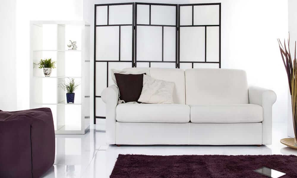Divano letto di linea classica.