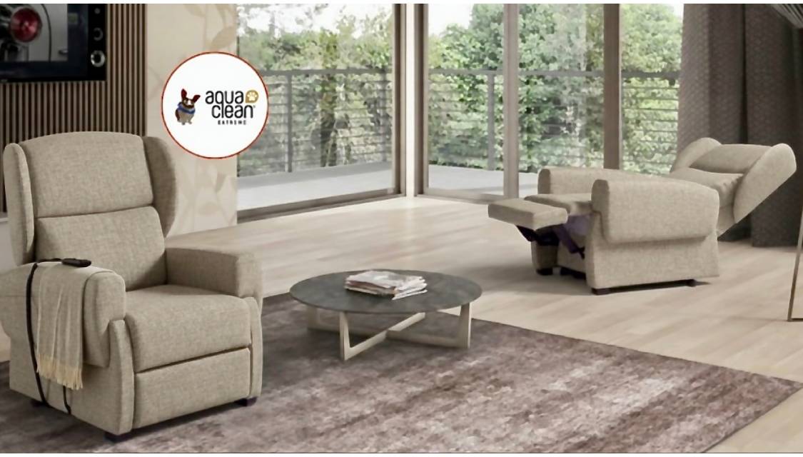 Tessuto Aqua Clean antimacchia, traspirante e facile da pulire.