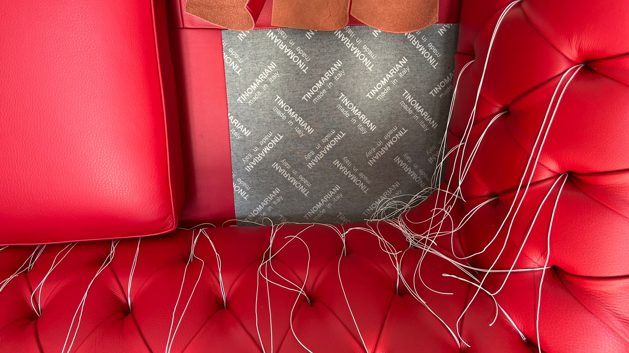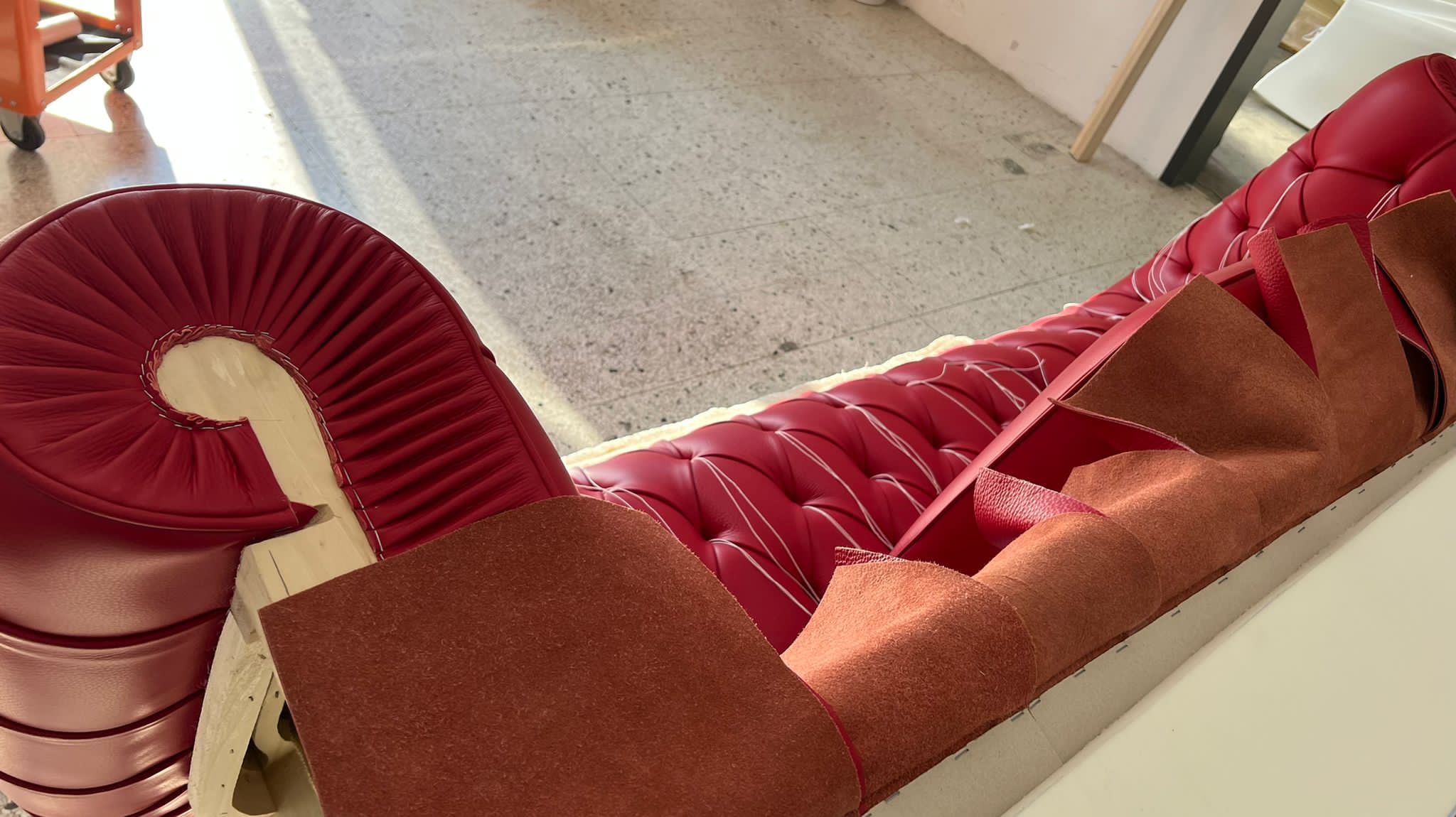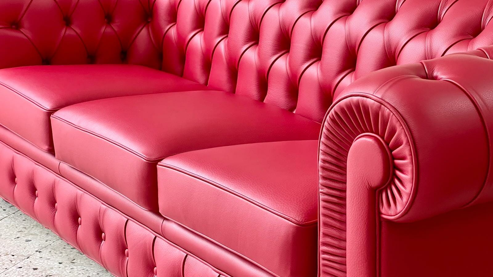 Realizzazione divano Chesterfield in pelle pieno fiore colore rosso