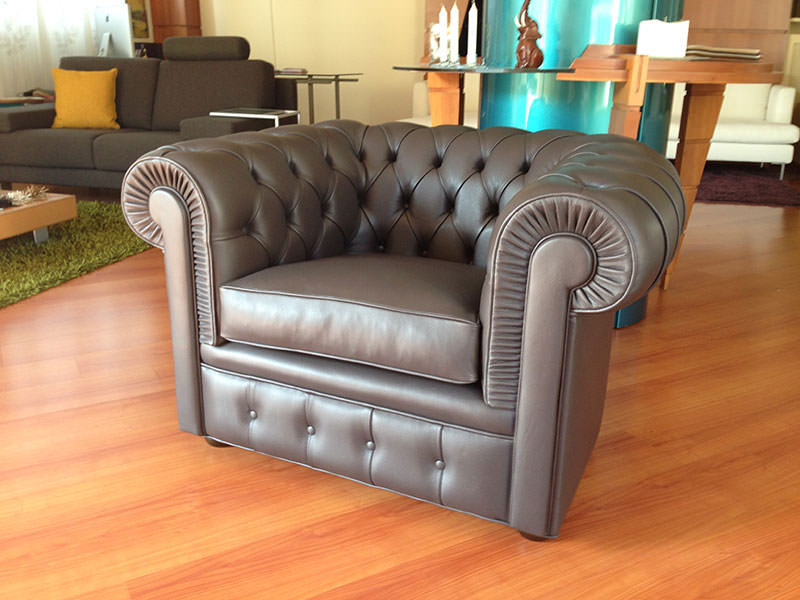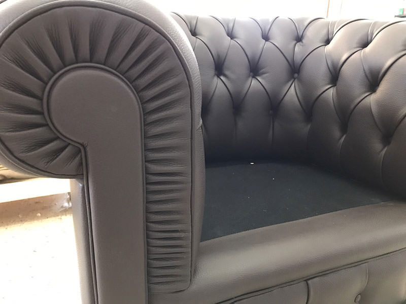 Realizzazione poltrona Chester in pelle con autentica lavorazione a capitonné