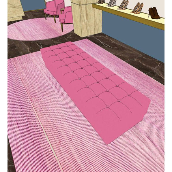 Realizzazione pouf su disegno a capitonné in velluto 100% cotone colore rosa